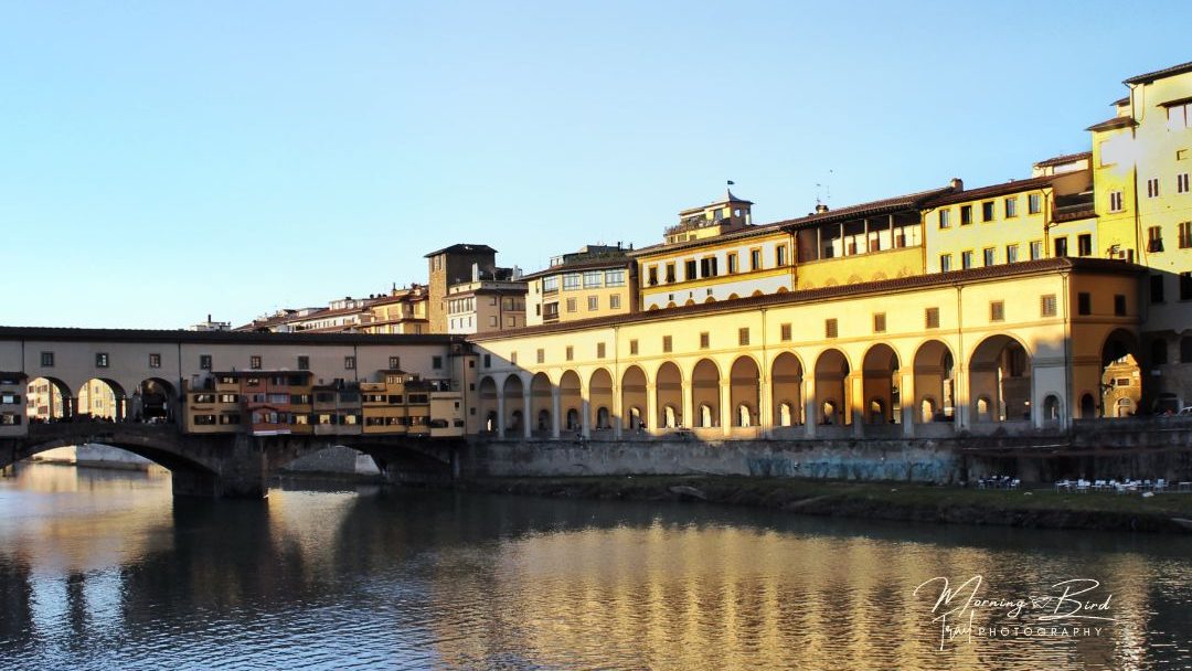 Above one of the sides of the shops, you find Vasari corridor (that continues on the riverside, before disappearing into privet houses). This place is probably where you can see the larger part of the corridor.