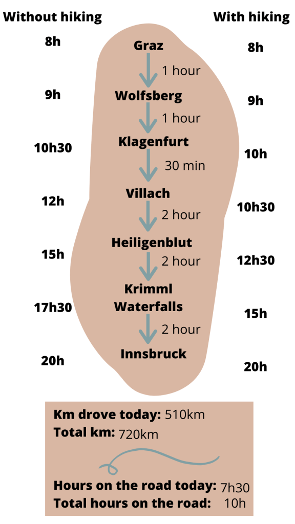 This road trip is also highly dependent on the weather, which isn’t always reliable in Austria, especially in the mountains. This means that you may want to spend a couple more days driving around Austria so that you have more time to deal with bad weather and setbacks.