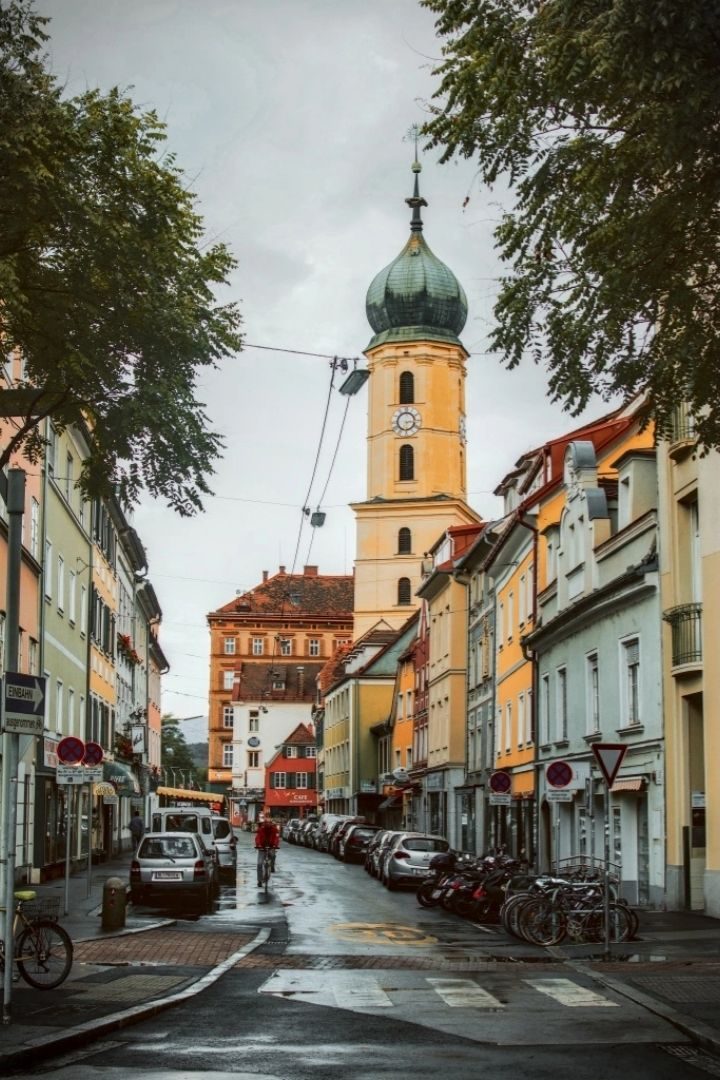 In Villach, you can stop for lunch and Villach is a little town near the border between Austria and Italy. It is a town with a lot of history and culture. It has been almost totally destroyed by the allies in WWII but quickly recovered. You can experience several festivals throughout the year, such as the Carnival, street art festivals, and performances on the river. You can try to plan your trip so that you can see one of them.
