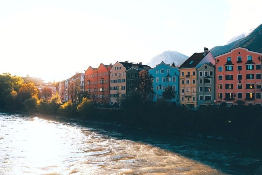 One of the most famous landmarks of Innsbruck is the colored houses by the river. These houses are located in the Mariahilfstraße and can be seen from the old town.