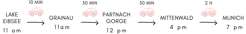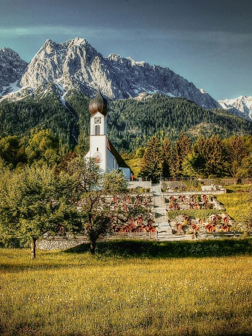 After this connection with nature, we’ll drive, for 10 minutes, to Grainau, close to the lake. Grainau is a village in Bavaria between the mountains and with a quite iconic church, the Kath. Pfarramt St. Johannes d. Täufer Grainau. Besides the wonderful views from the village, you can also explore the beauty of The Höllental Gorge and the Partnach Gorge.