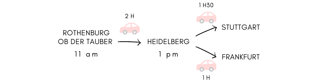 On this last day of this south Germany road trip itinerary, you’ll go back to the beginning, to Baden-Württemberg and Stuttgart or Frankfurt. However, we won’t just drive the 2-hour directly to Stuttgart or Frankfurt. We’ll do one last stop in the city of Heidelberg, 2 hours away from Rothenburg ob der Tauber, 1h30 from Stuttgart and 1 hour away from Frankfurt.