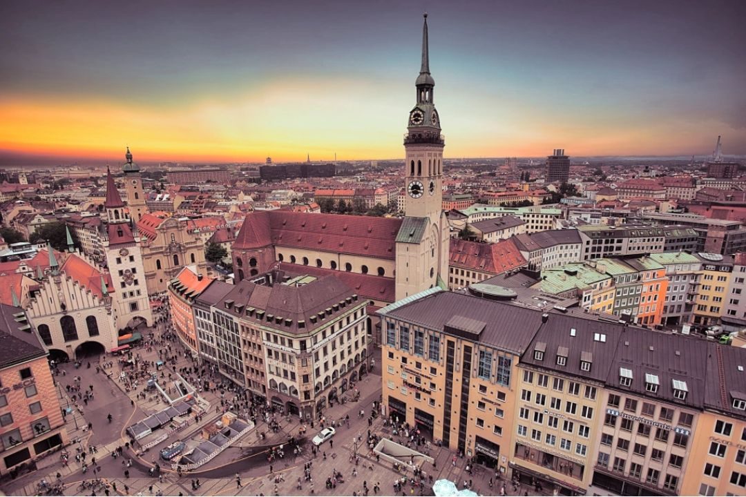Munich has a mix of older and newer architecture because, even though most of the city was destroyed in the second world war, the historic buildings were reconstructed and the city rebuilt following the previous street grid of the city.