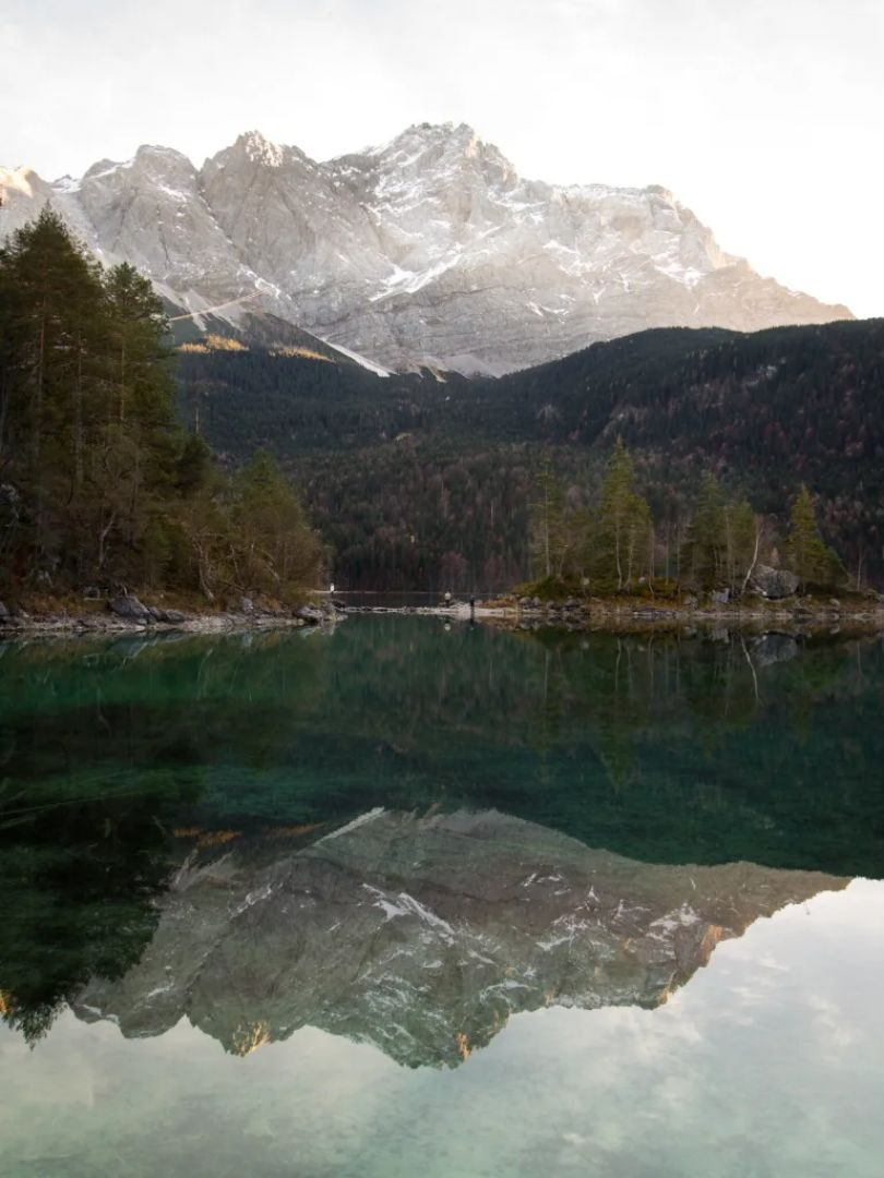 Independently of spending the night in Oberammergau or by the lake, the objective this morning is to appreciate a bit of the lake and even take a walk around it. The Eibsee lake has several trails that may take you more or less time to walk. Any of these trails is a good choice since it will give you beautiful panoramic views of the lake. Another option is to just enjoy the calm moments in the morning by the lake.