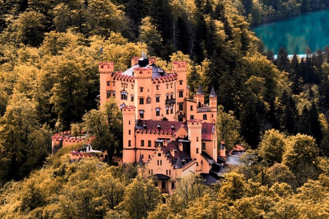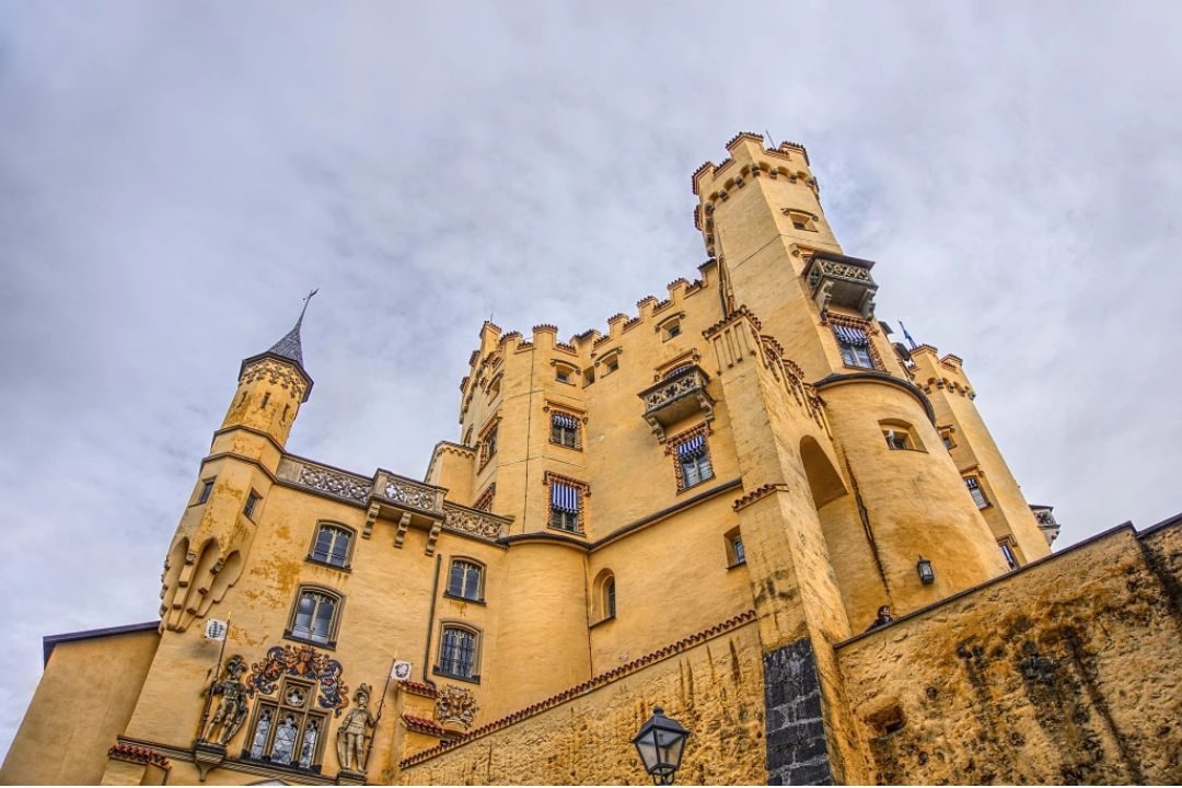 Next in this South Germany road trip, we’ll get to the Hohenschwangau Castle, the beautiful yellow castle on top of a hill. Driving, we’ll get there in less than 1 hour from Memmingen. The castle is a 19th-century palace in Baviera and is located close by to Neuschwanstein castle.