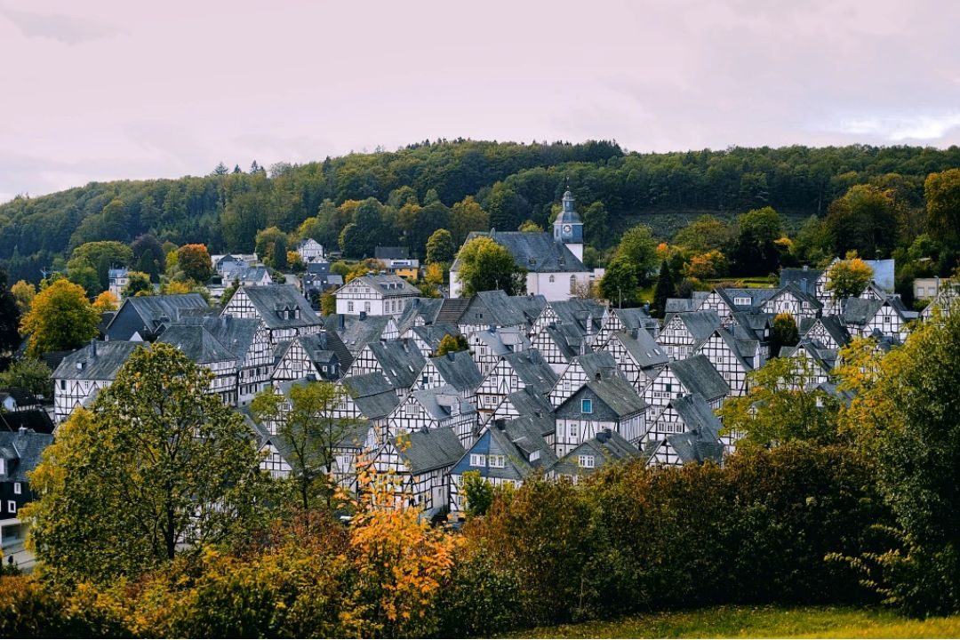 In NRW there is an adorable town called Freudenberg. This town is characterized by its completely white timber-framed houses which make the place magical in the Summer, but especially in the Winter when the snow covers the roofs of the houses.