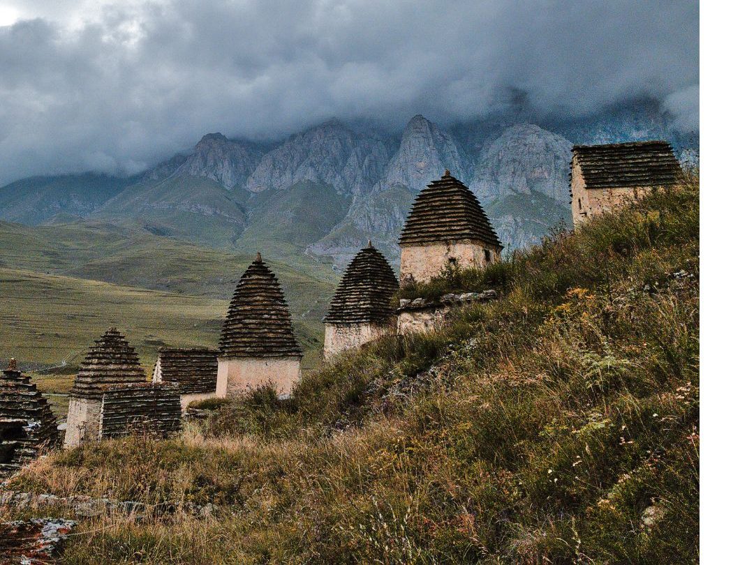The last monument dedicated to the deceased in this blog post is located just outside the little village of Dargavs in Russia, near the border with Georgia. This group of necropolis are known as the City of the Dead and is composed of almost 100 different tombs and crypts. The bigger crypts of the groups can be 2-4 stories high!
